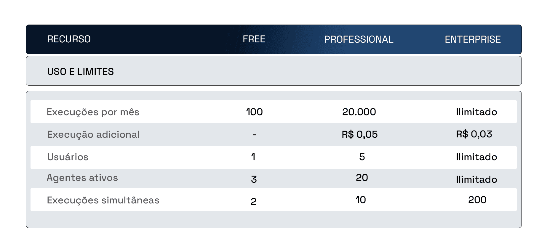 ✓ 20.000 execuções/mês
